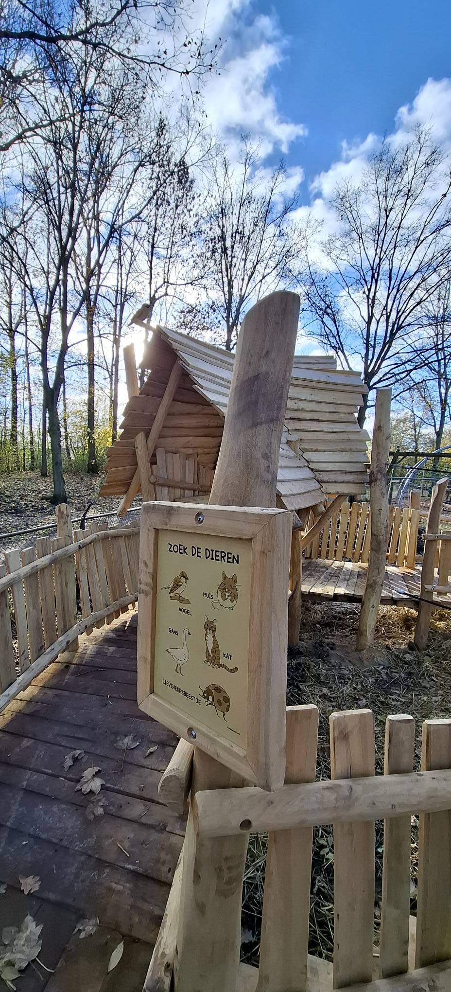 Wat een prachtig speeltoestel! We moeten nog even wachten op netten. Die worden later geleverd en geplaatst en we gaan nog werkzaamheden uitvoeren aan de bodem rondom het toestel. Er staan daarom nog hekken rondom het speeltoestel en er kan nog niet mee gespeeld worden… maar jeetje mina…wat is dit een gaaf speeltoestel!